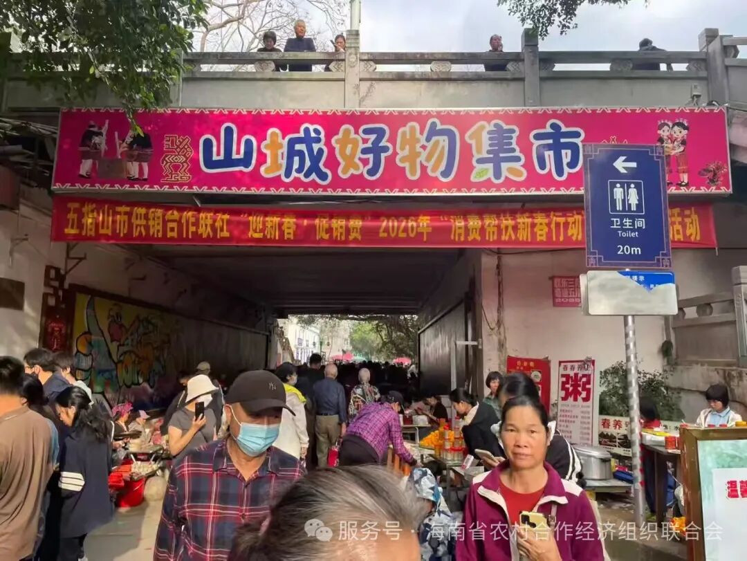 ☉小年将至,山城好物“迎新春”“促消费”活动开展中 2月7日、2月8日上午,在大桥底下,举办了2026年五指山市第11、12场“山城好物集市”。本次活动发动全市7个乡镇、畅好居的脱贫户、槟榔户和合作社农户参与。2月7日共有512户农户报名参与产品销售, 日期:2026.02.12 点击:9
