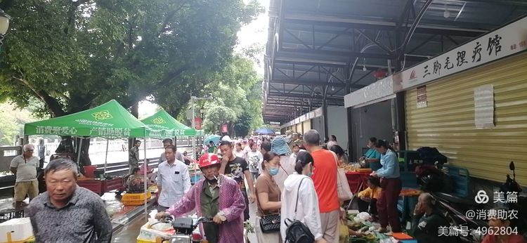 7月24日上午,虽然受热带低压影响市区下着小雨,但我市今年下半年第4场消费助农周六赶集日依然在市通什大桥底下举行,这也是今年第18场赶集日,来自全市7个乡镇的脱贫户和合作社参与产品销售,报名户数有90户左右,市民消费热情很高!肉类在十一点钟左右基本销售完。各单位干部职工、各帮扶责任人和社会各界爱心人士积极参与消费助农。据不完全统计共计消费101887元,其中通什镇61255元,南圣镇27554元,番阳镇3270元,毛阳销2210元,畅好乡5158元,水满乡1760元,毛道乡680元。篮子兴合公司继续参与赶集日活动,把政府平价蔬菜投放到赶集日进行现场销售,物美价廉,深受市民欢迎!让市民亲身体验到政府平价蔬菜带来实实在在的实惠!兴合公司除了每天在市第三农贸市场(牙蓄路民族研究所旁边)和鸿鑫农贸市场(市政府平价蔬菜销售区第二排)进行平价销售外,每周六也在消费助农赶集日投放平价蔬菜,欢迎广大市民前来惠顾。